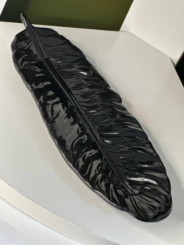 Plateau décoratif en forme de plume, fabriqué à la main en résine époxy. Sa silhouette délicate et ses courbes raffinées en font une pièce élégante, idéale pour accueillir bijoux, bougies, clés ou petits objets du quotidien.