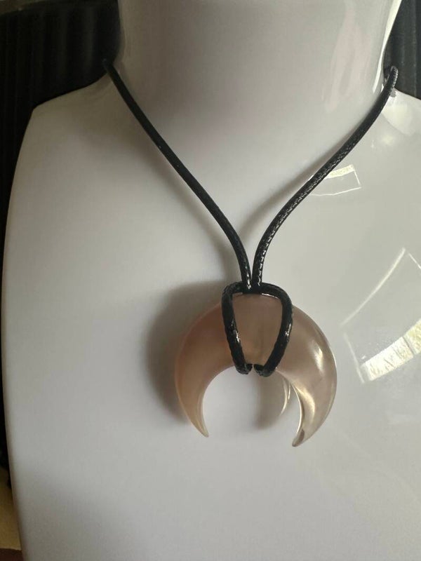 Monté sur une corde en cuir synthétique tressé élégante et résistante (avec attache en acier inoxydable), ce bijou allie légèreté, originalité et poésie. Un accessoire parfait pour celles et ceux qui aiment porter des pièces qui ont une histoire.